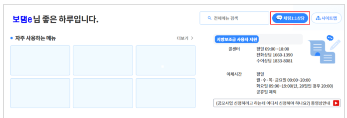 채팅 상담은 보탬e 화면에서 ‘채팅 1:1 상담’ 버튼 클릭 한 번으로 접근할 수 있으며, 전화 대기 없이 상담원이 직접 빠르게 대응해 요구사항에 맞는 대화형 상담이 가능하다. 특히, 이미지, 사진, 동영상 등을 공유하며 직관적으로 이해할 수 있고 따라하기도 쉬워진다.